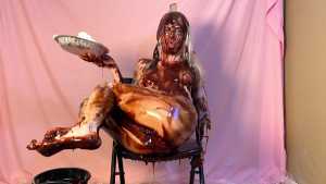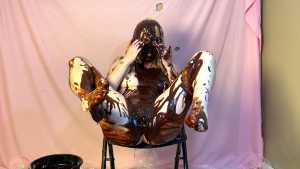 Seeing a woman completely engulf herself in thick, dark brownie batter is enough to convince me that there's no fetish as cool as wam. Kaydens covers everything except her eyes; they're all the more white against this substance, and it's quite a sexy look. I love a moment earlier when she pours the stuff over her face while aiming partially for her open mouth. There's an additional cool mixture of drool and brownie batter.