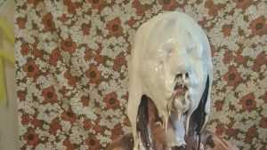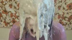 She gest handfuls of the pink and mauve icing and shoves it down her bra and then proceeds to smear it all over her top half, and then covers her knickers, and shoves handfuls inside too, and the top of her legs too. Then she has some fun, head dunking in what looks like batter. She keeps her glasses on, which is so hot! 5 minutes in, and the bra comes off and her great tits are unveiled. About halfway through the video she takes her knickers off too and is naked, before continuing her head dunking fun, this time into melted chocolate, with some amazing squelching sounds. She makes sure to smear the melted chocolate all over herself... and then it's time for the 4th July pie. She smears one over herself, then stands in it for some foot play. Then she tips the bucket of cake batter over her head, making sure to rub it in. Then she tips the bucket of melted chocolate over her head, and rubs that in too. She then makes a new pie from the slops and then grabs handfuls of white gloop and covers her face. Happy 4th of July.