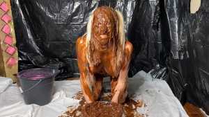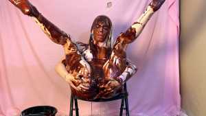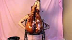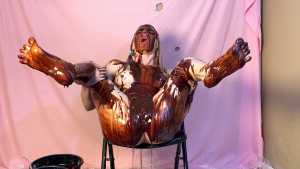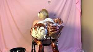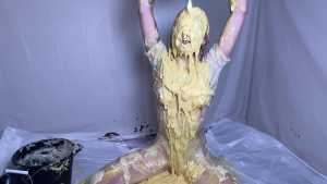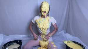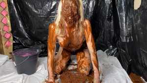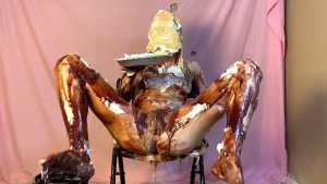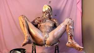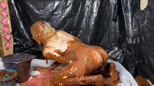 Seeing a woman completely engulf herself in thick, dark brownie batter is enough to convince me that there's no fetish as cool as wam. Kaydens covers everything except her eyes; they're all the more white against this substance, and it's quite a sexy look. I love a moment earlier when she pours the stuff over her face while aiming partially for her open mouth. There's an additional cool mixture of drool and brownie batter.
